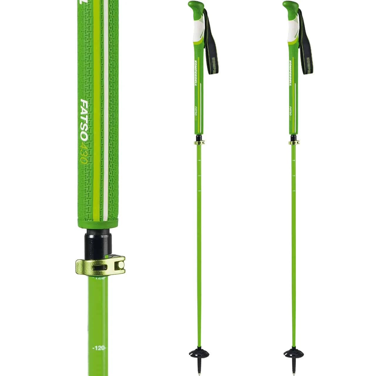 Komperdell Fatso Carbon Team Vario, the pole with the long, ergonomic grip zone and the ingenious quick lock system – perfect for unique powder skiing. Due to the combination of carbon and aluminium, the pole is light and robust at the same time and can be adjusted in length with the Powerlock 3.0 adjustment system, as well as pushed together to a packing size of 107 cm. The XL ice slope basket is ideal for freeriders, as it adapts up to 28° to the slope inclination and thus to the alpine conditions. The Fatso in the original Komperdell green – this is cult!