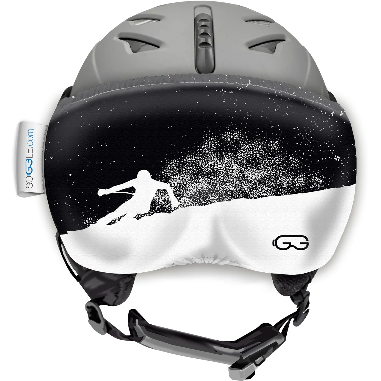 SOGGLE solves this problem in a very simple way and still offers significant added value. In addition to protecting the vizor, SOGGLE is also a glasses cleaning cloth made of microfiber and above all becomes a visible expression of individual style. With the attached label, SOGGLE can be put on or taken off the glasses with one hand.