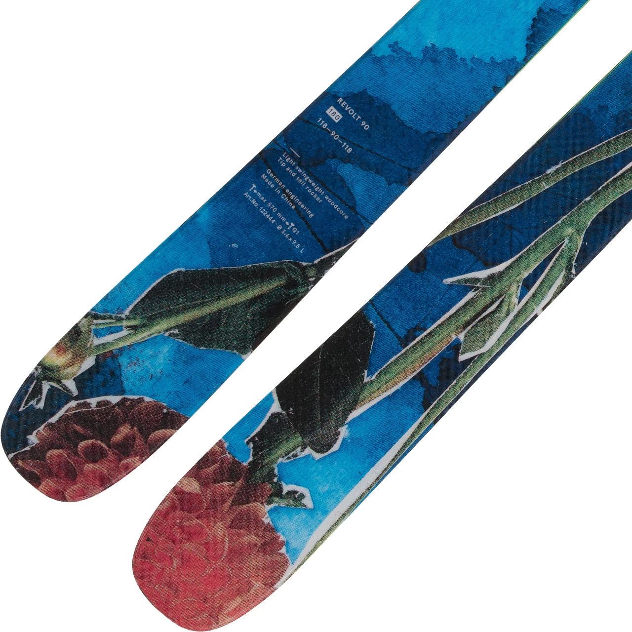 Inside the Revolt 90 is the Light Swingweight wood core. In this construction, the weight is reduced in the ski ends and concentrated in the center, making the ski much easier and more controlled to rotate in the air. For use in the park, the sidewall of the ski is equipped with an additional layer. This improves stability and increases the durability of the ski.